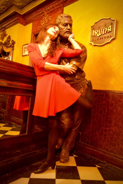 Mi compañero no es de Pamplona y cuando el intensivo finalizó se marchó a su ciudad, por lo que tuve que pensar en otra pareja para poder hacer la sesión fotográfica y mostraros lo que he aprendido. Después del curso y pensando en un «merecido» descanso nos acercamos al Café Iruña en la Plaza del Castillo, el rincón más emblemático de Pamplona, punto de encuentro en la vieja Iruña y testigo privilegiado del paso de los años.