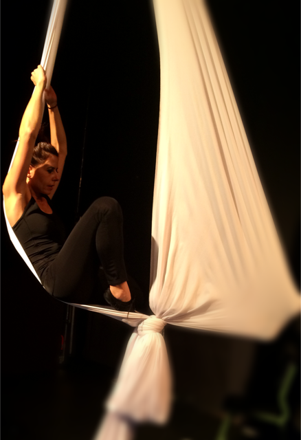 En esta modalidad de danza se realizan evoluciones coreográficas y acrobáticas suspendidas en una tela.